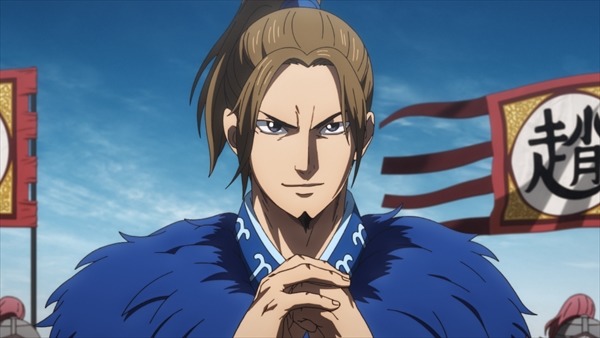 Meanwhile, the Hi Shin Unit (Fei Xin Force), still not being able to grasp the situation, catches up to Wei’s forces in the land of “Raigen”. There they see Qin’s forces put up a good fight against a large army led by the great general of Wei, Go Hou Mei (Wu Feng Ming), with only a small number of troops. The troops were led by the great general Hyou Kou (Lord Biao), who Shin (Xin) once fought under.